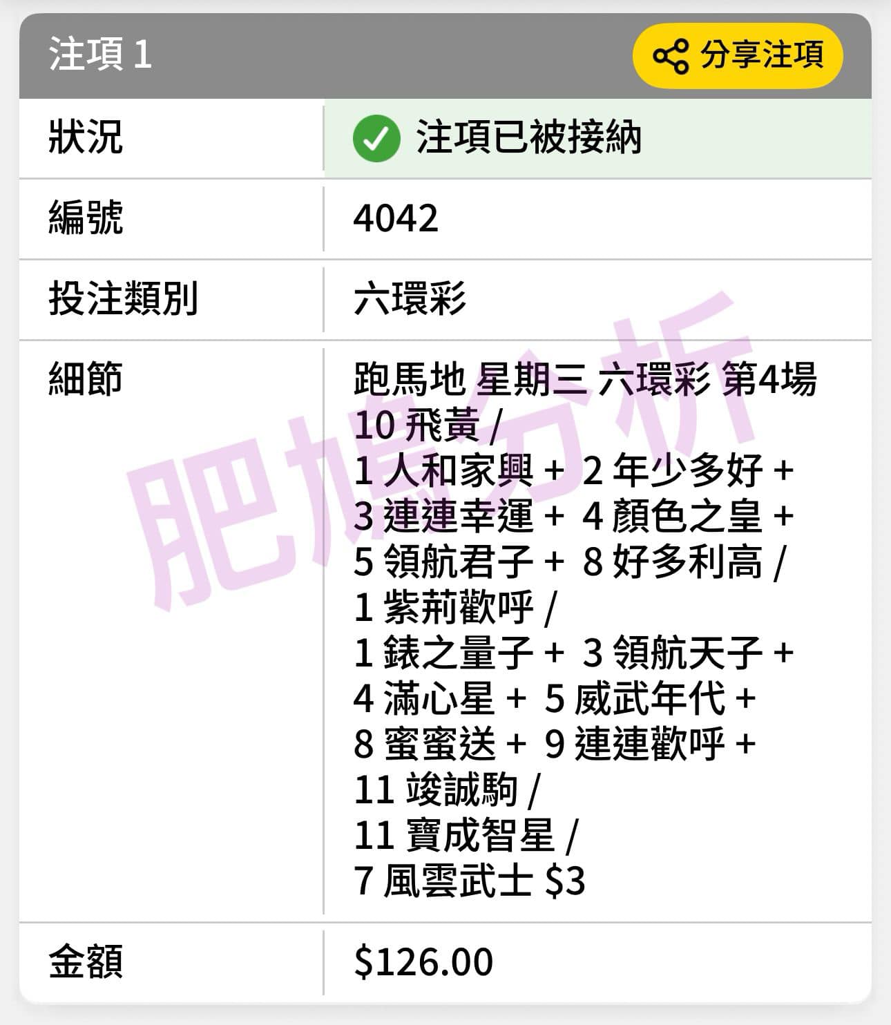 純粹娛樂小注參與!大家要量力而為、娛樂至上!祝大家好運!(中唔使讚、輸唔好鬧、純粹參考、一切皆運氣)